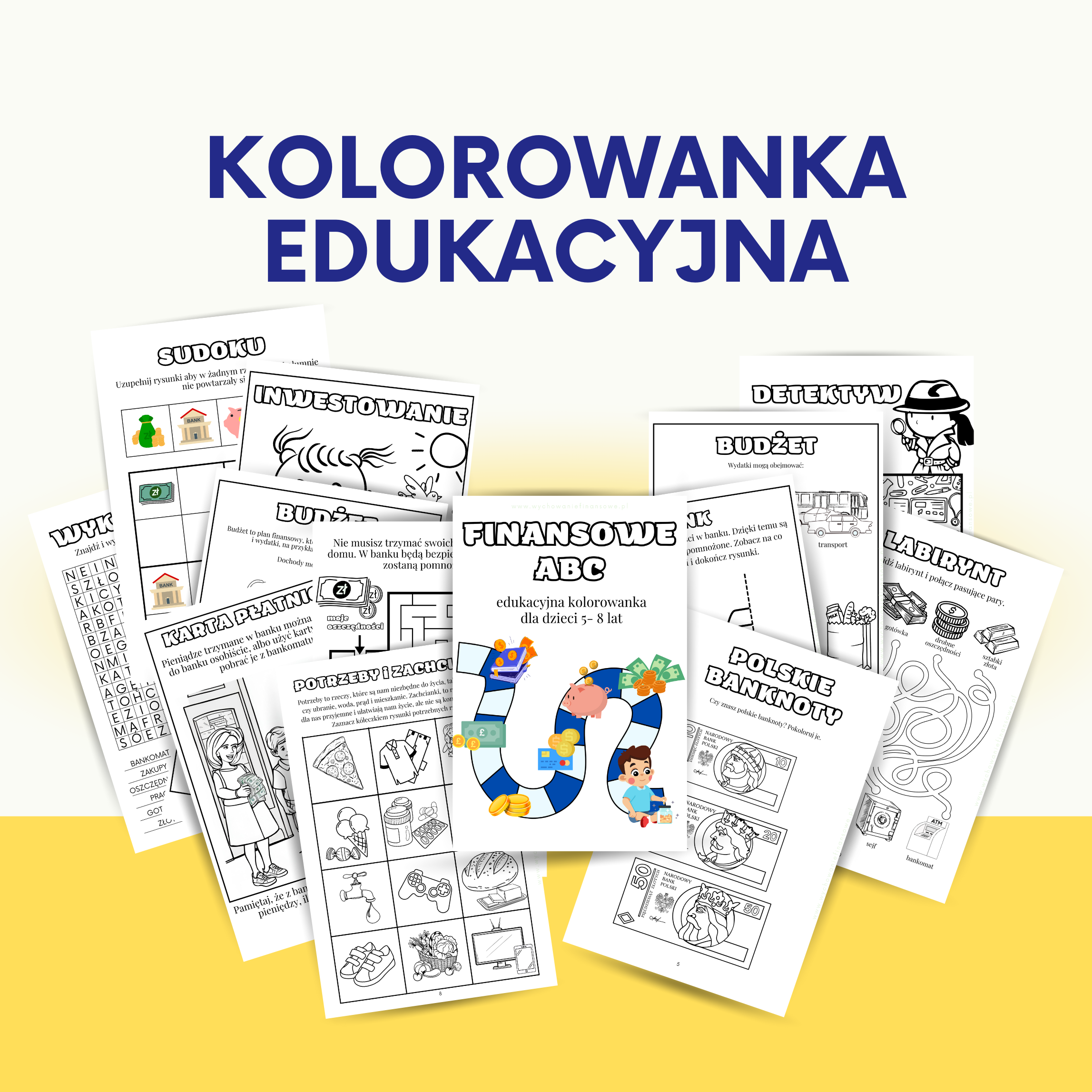 Finansowe ABC – kolorowanka edukacyjna dla dzieci w wieku 5 – 8 lat